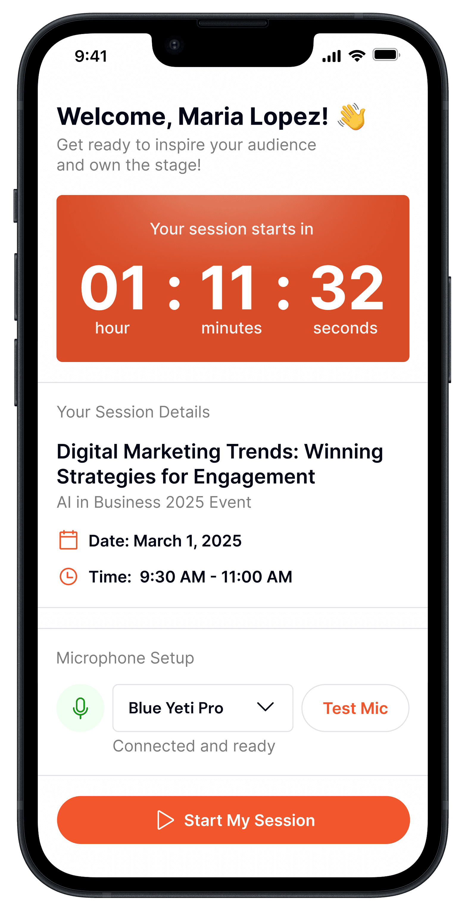 A synchronized ecosystem connecting event organizers, speakers, and audience in real-time.